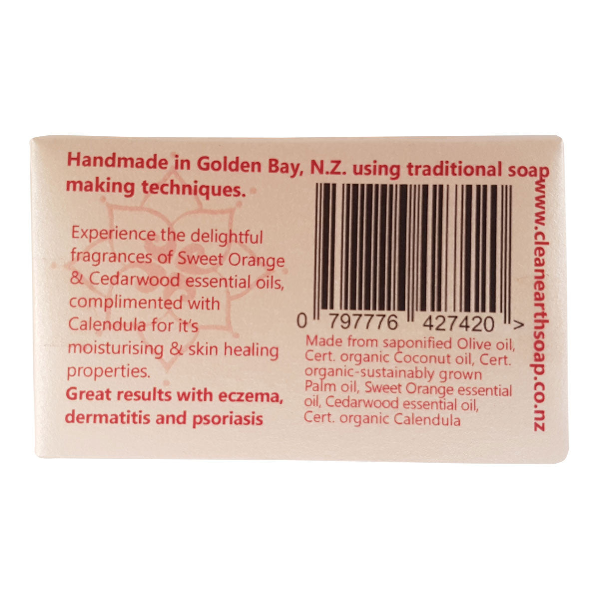 Clean Earth Soaps Sweet Orange & Cedarwood Bar is made of essential oils and pure natural ingredients with the addition of certified organic calendula for its moisturising & skin healing properties.