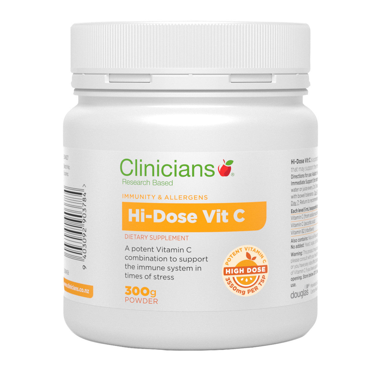 Clinicians Hi-Dose Vit C Powder is a potent formulation containing two forms of Vitamin C that may support the immune system in times of stress. Each teaspoonful provides a high 3550mg dose of Sodium ascorbate and Ascorbic acid, buffered forms that are well tolerated and easily absorbed by the digestive tract.