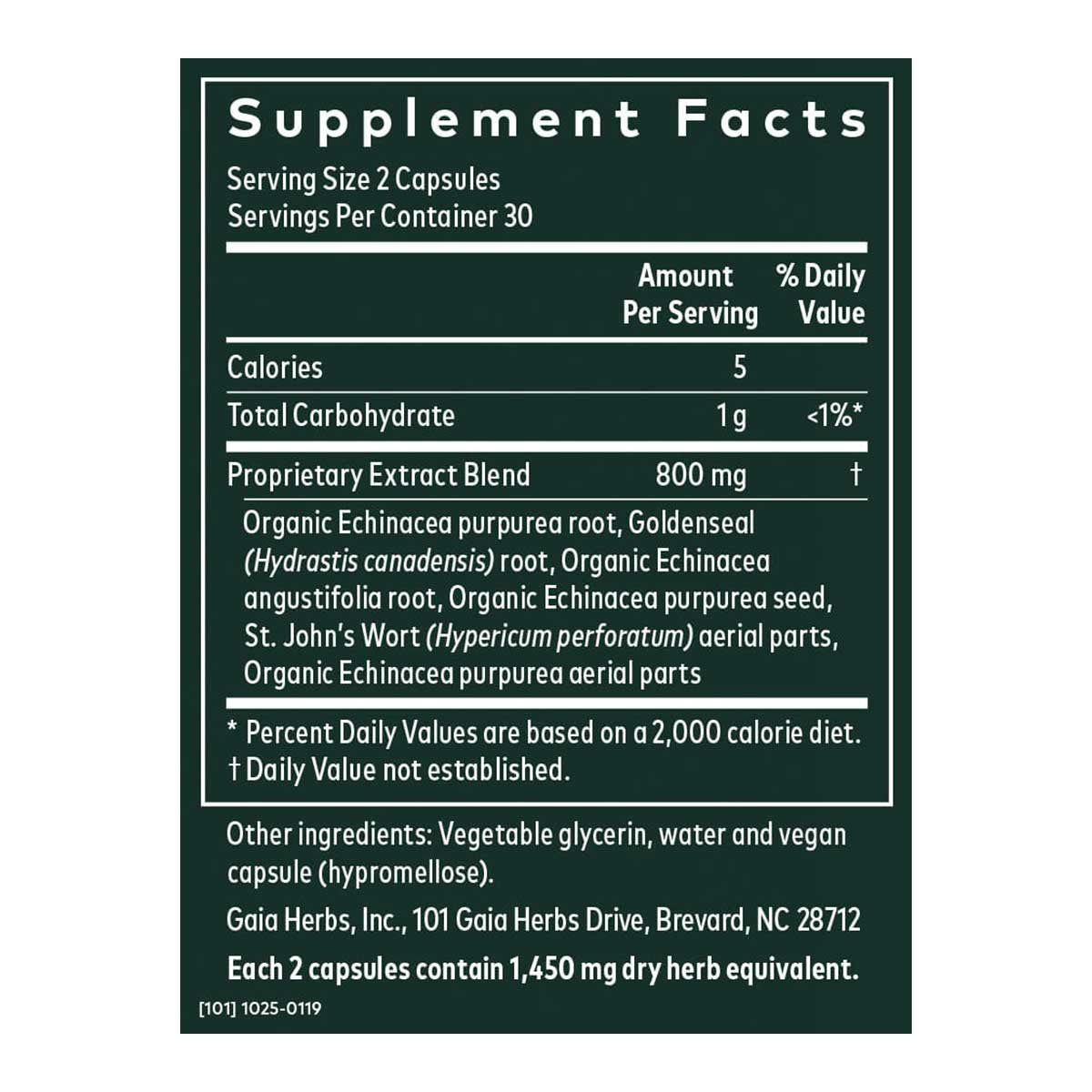 Gaia Herbs Echinacea Goldenseal is a harmonious proprietary extract blend of echinacea in combination with goldenseal and st john’s wort, using Gaia Herbs patented Phyto-Caps® technology.
