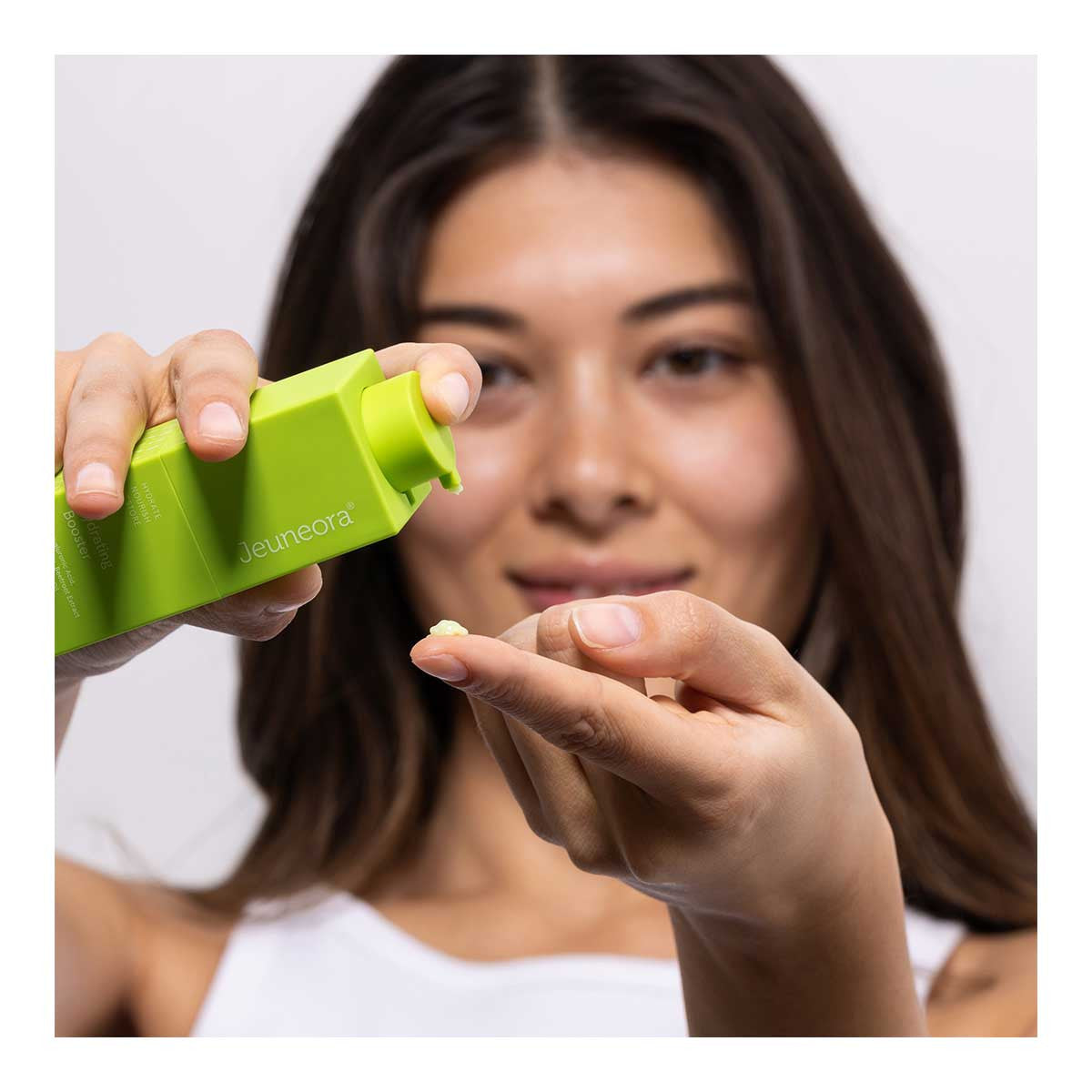 Jeuneora Hydrating Booster: Designed for dry or stressed skin, Hydrating Booster features a highly efficacious form of hyaluronic acid paired with innovative, super hydrating botanical ingredients that support your skin barrier and visibly restore firmness, plumpness and elasticity. The star of the show is MultiMoist™, an innovative beetroot extract that supports both short and long-term hydration.