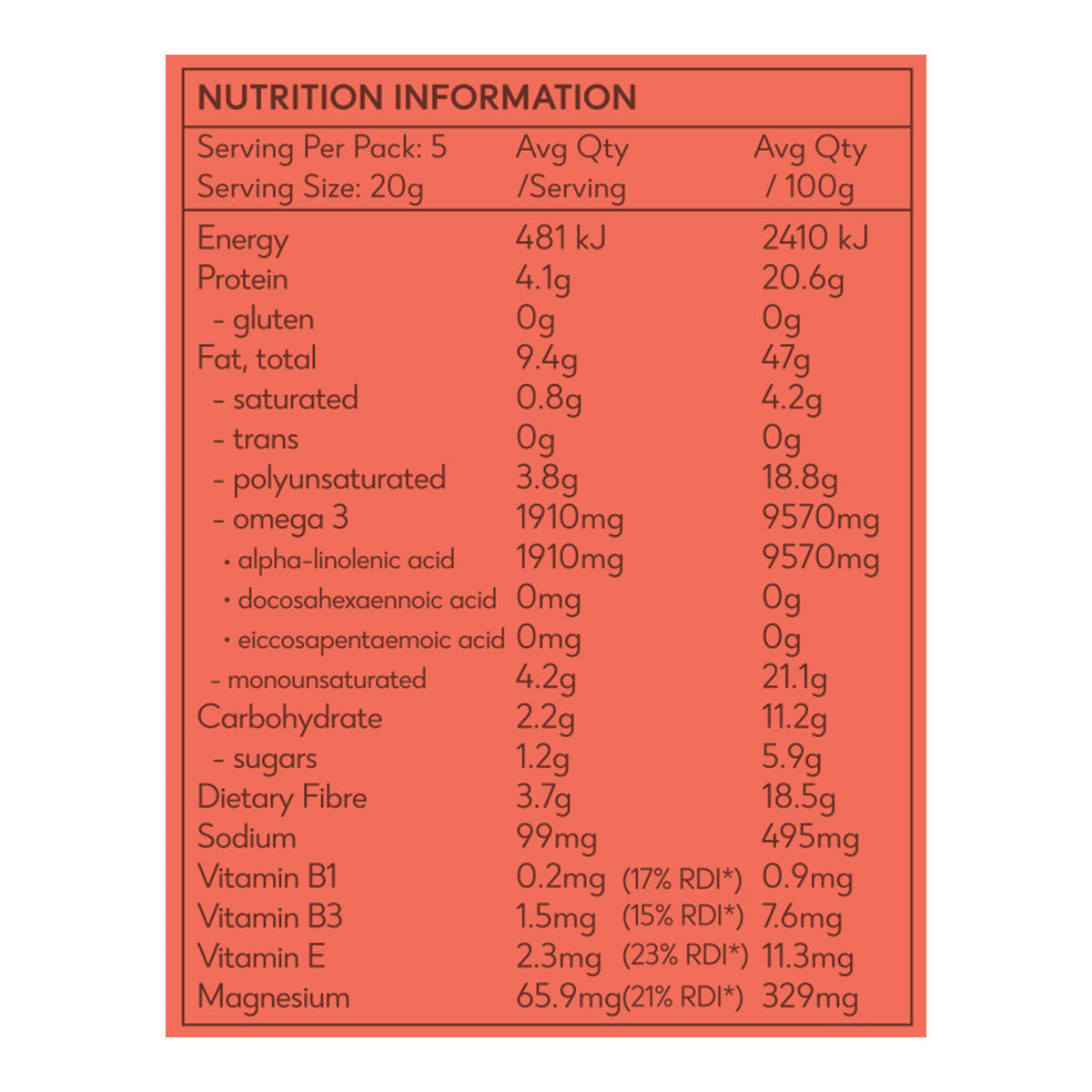 These little crackers are naturally packed with organic goodness, including an abundance of omega 3s, and containing vitamin E, B vitamins and magnesium.
