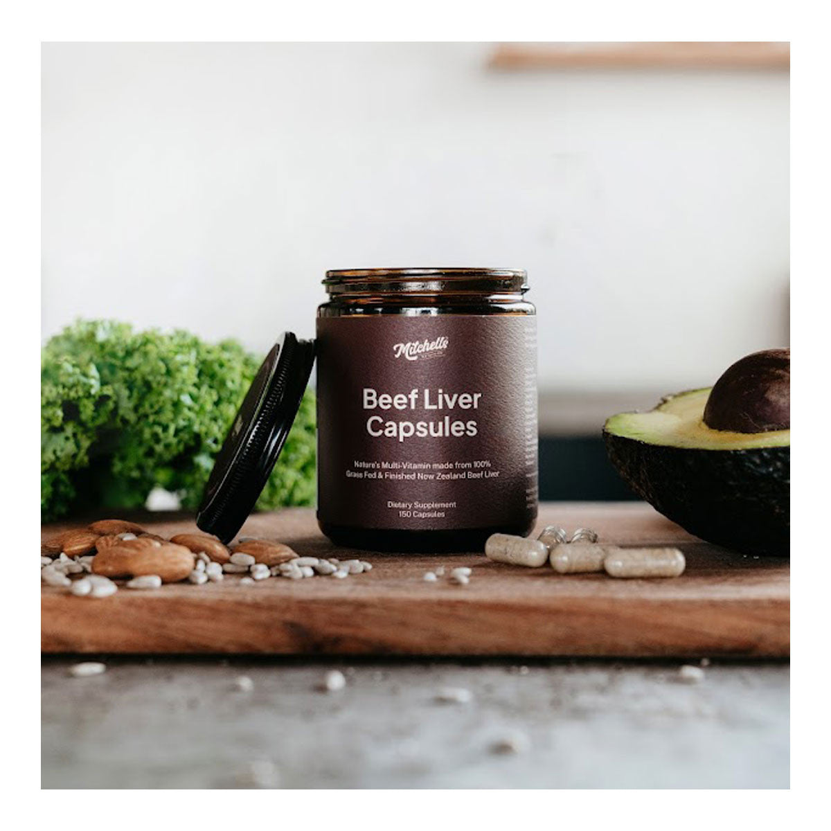 Mitchells Nutrition Beef Liver Capsules: Nature’s multi-vitamin made from 100% grass fed & finished New Zealand beef liver.