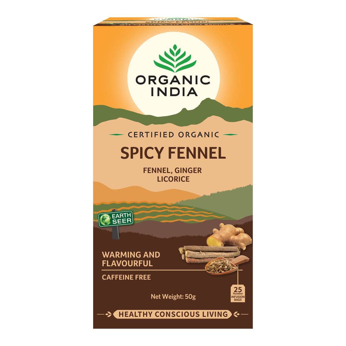 Organic India Spicy Fennel Tea is a harmonious blend of certified organic herbs including fennel, ginger, and licorice. Perfectly balanced, this infusion brings together the bold zest of fennel, the gentle warmth of ginger and the natural sweetness of licorice.