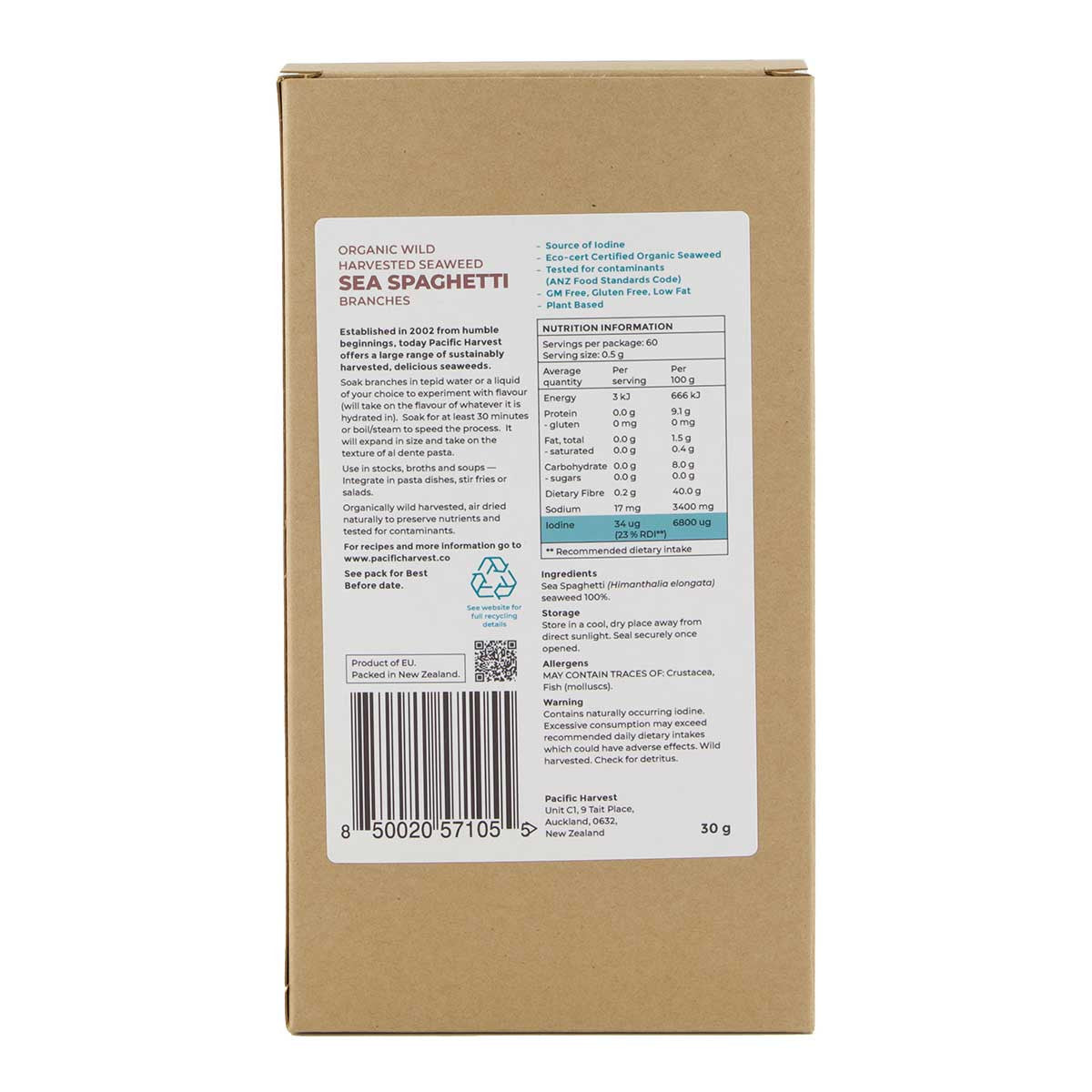 Pacific Harvest Sea Spaghetti Branches is organically wild harvested and air dried naturally to preserve nutrients and tested for contaminants.