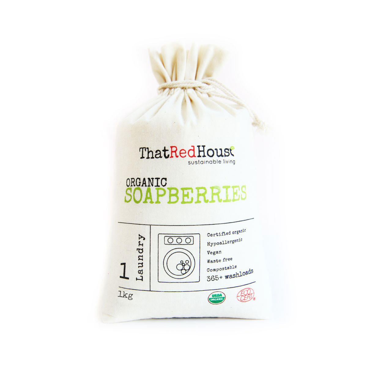 That Red House Soapberry Shells are the fruit of the 'Sapindus Mukorossi' tree. The dried shell is full of a natural anti-bacterial, anti-fungal soap called Saponin and they are hypo allergenic, sustainably grown and wild-harvested in the Himalayas. They are suitable for front loaders and top loader washing machines.