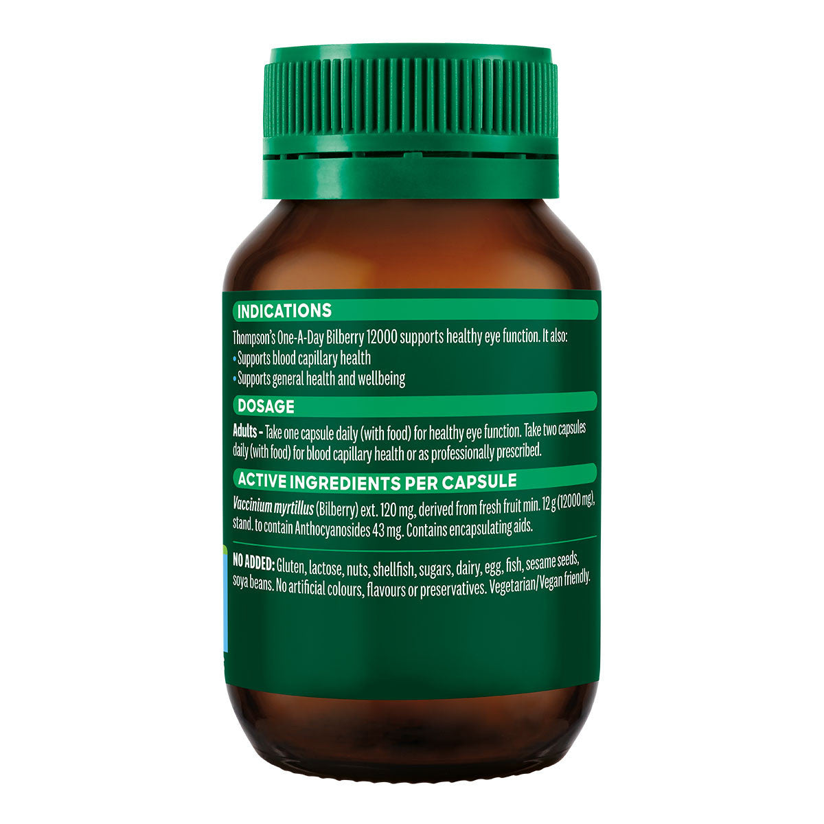Thompson's Bilberry One-A-Day 12,00 is for healthy eyes and circulation.