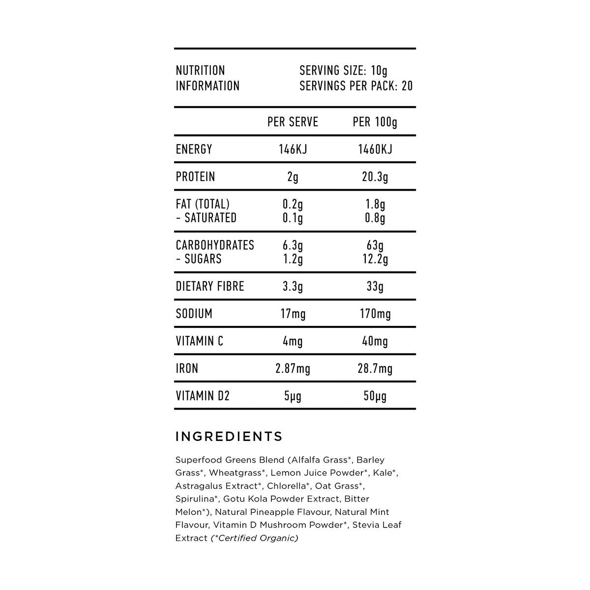 Tropeaka Superfood Greens + D is a daily greens formula packed full of alkaline superfoods.