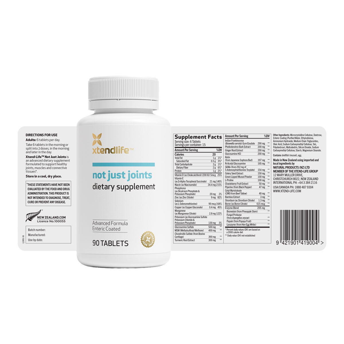 Contains glucosamine, chondroitin, New Zealand green lipped mussel powder, MSM and turmeric to support cartilage function.